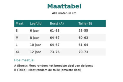 Bekijk de maattabel bij de afbeeldingen en bepaal eenvoudig welke maat je nodig hebt.