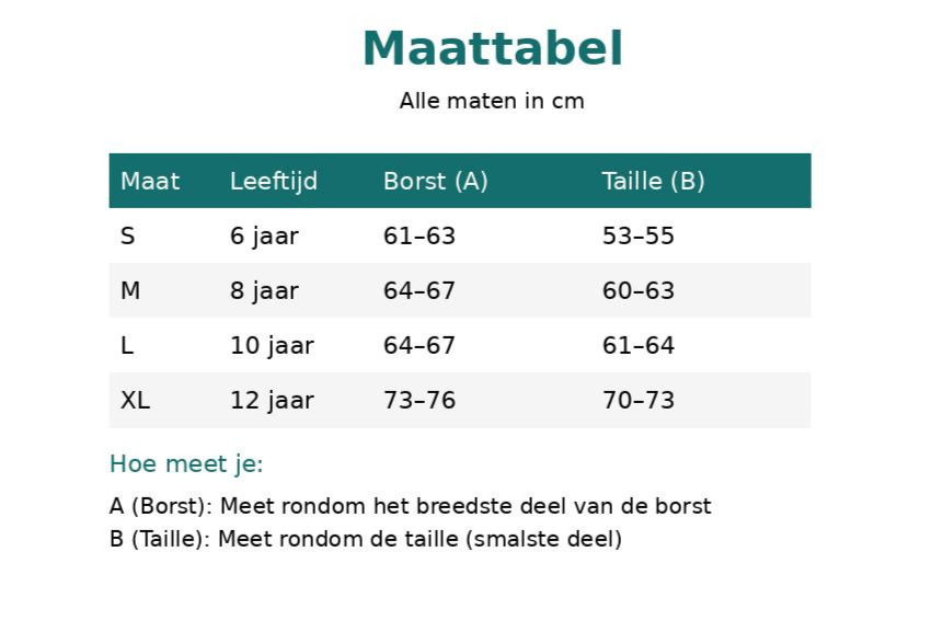 Bekijk de maattabel bij de afbeeldingen en bepaal eenvoudig welke maat je nodig hebt.